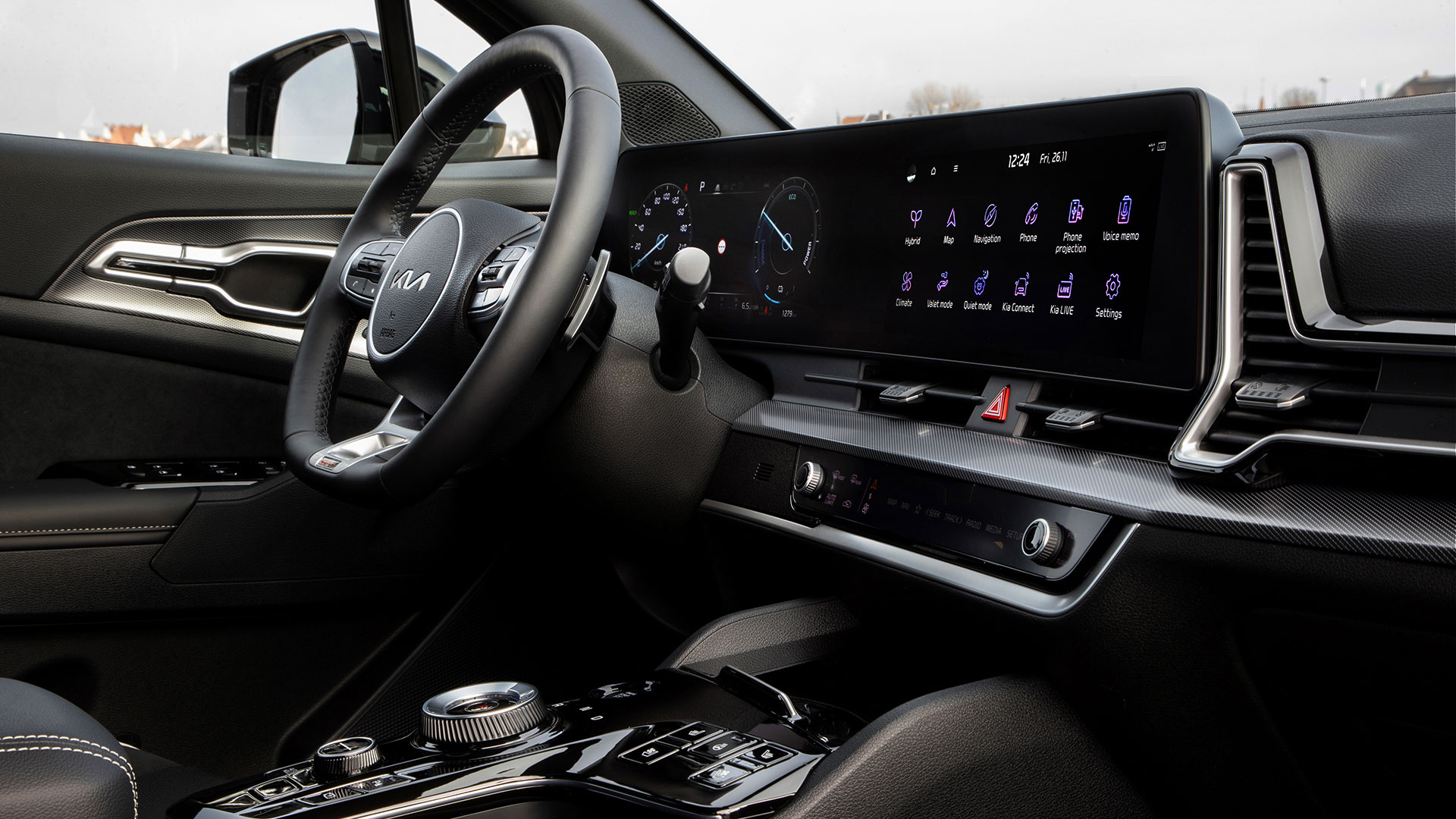 Ecranul tactil de înaltă tehnologie de 12.3 inch și display-ul tactil multi-modal acționează ca un centru nervos pentru nevoile de conectivitate, funcționalitate și utilizare ale șoferului și pasagerului. Ambele au fost create pentru a fi ușor de utilizat, foarte intuitive și plăcute la atingere. Grupul de instrumente de 12.3 inchi este echipat cu ultima generație a display-ului cu tehnologie TFT LCD (thin-film-transistor liquid-crystal display) pentru o grafică incredibil de precisă și clară. Cu o astfel de tehnologie de conectivitate high-tech avansată și sigură, noul Sportage beneficiază de cele mai recente actualizări de software și hărți prin satelit. Software-ul avansat de conectivitate din noul Sportage permite utilizatorilor din Europa să se conecteze cu automobilul lor de la distanță prin aplicația pentru smartphone Kia Connect. Tehnologia interactivă, ușor de utilizat, oferă utilizatorilor acces la funcțiile cheie de la bord, oferind o liniște deplină printr-o simplă atingere pentru a verifica dacă automobilul lor este încuiat și ușile sunt închise și oferă confort deplin prin informarea utilizatorilor despre locul exact unde au parcat SUV-ul lor.