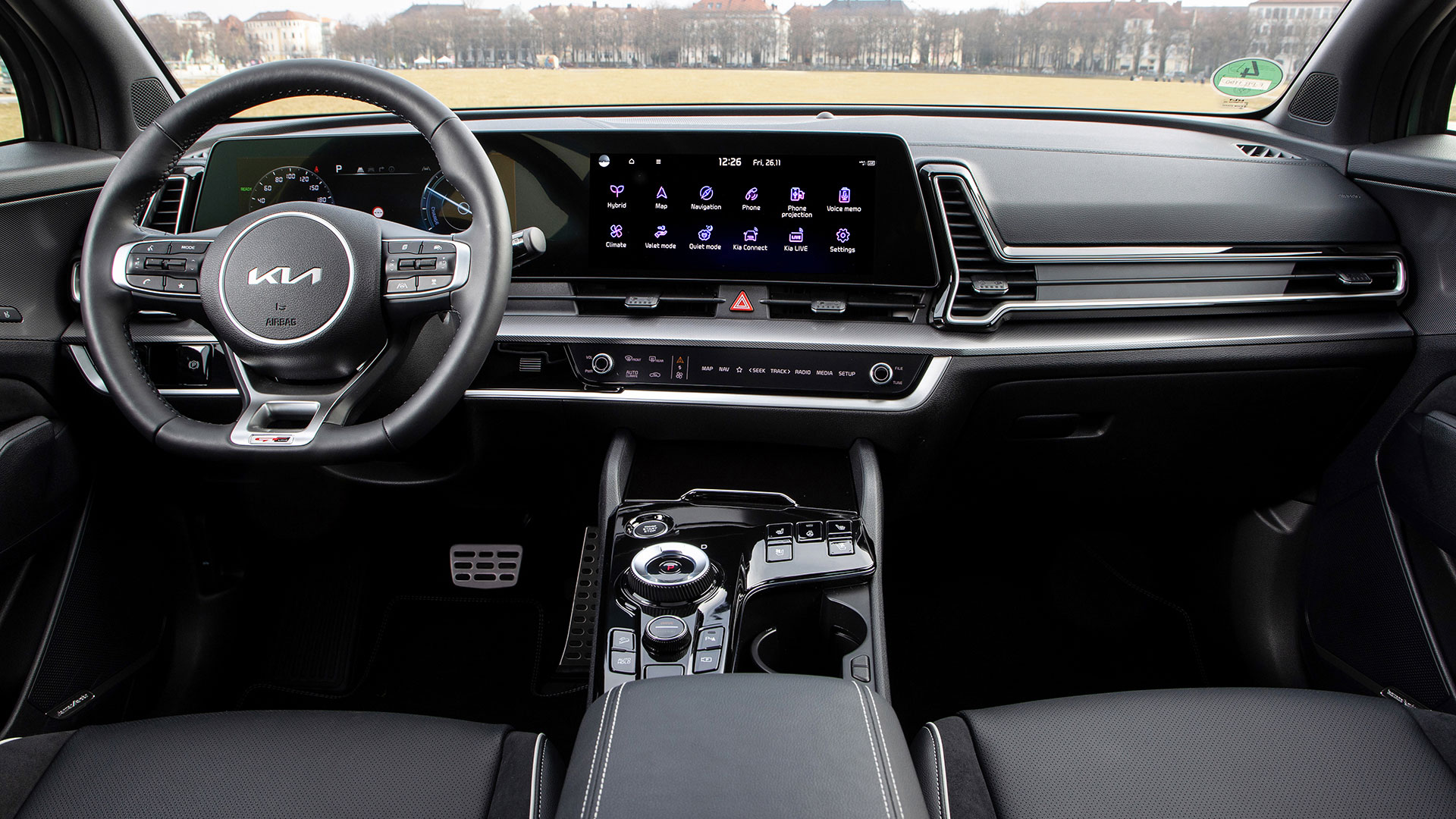 Pachetul de dotări pentru modelele HEV și PHEV a fost pregătit cu atenție pentru a minimiza impactul asupra spațiului pentru pasageri și bagaje. Pentru versiunea HEV, bateria este plasată sub scaunele din al doilea rând, rezultând un spațiu pentru picioare identic cu cel al modelelor Sportage cu motor cu combustie internă. Pentru versiunea Sportage PHEV, bateria de înaltă tensiune este plasată central între cele două axe, sub caroseria SUV-ului, asigurând o distribuție echilibrată a greutății și un spațiu interior practic, confortabil și versatil.